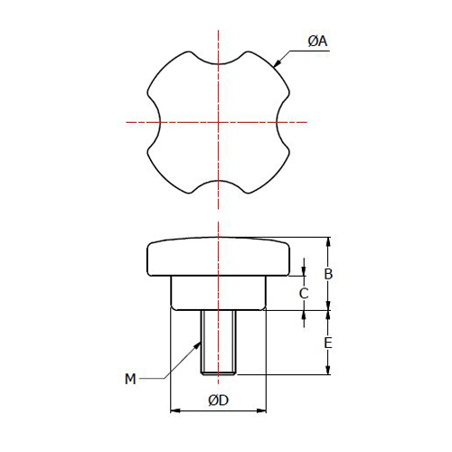 노브볼트 플라스틱 오각 손잡이볼트 SK-2040