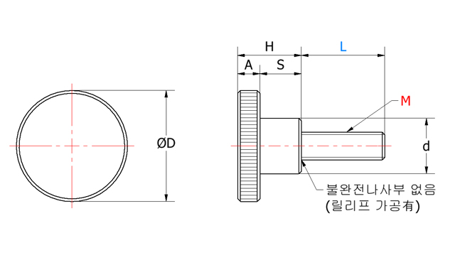 노브볼트 스틸 원형 널링 2단 단붙이 손잡이볼트 SK-2114