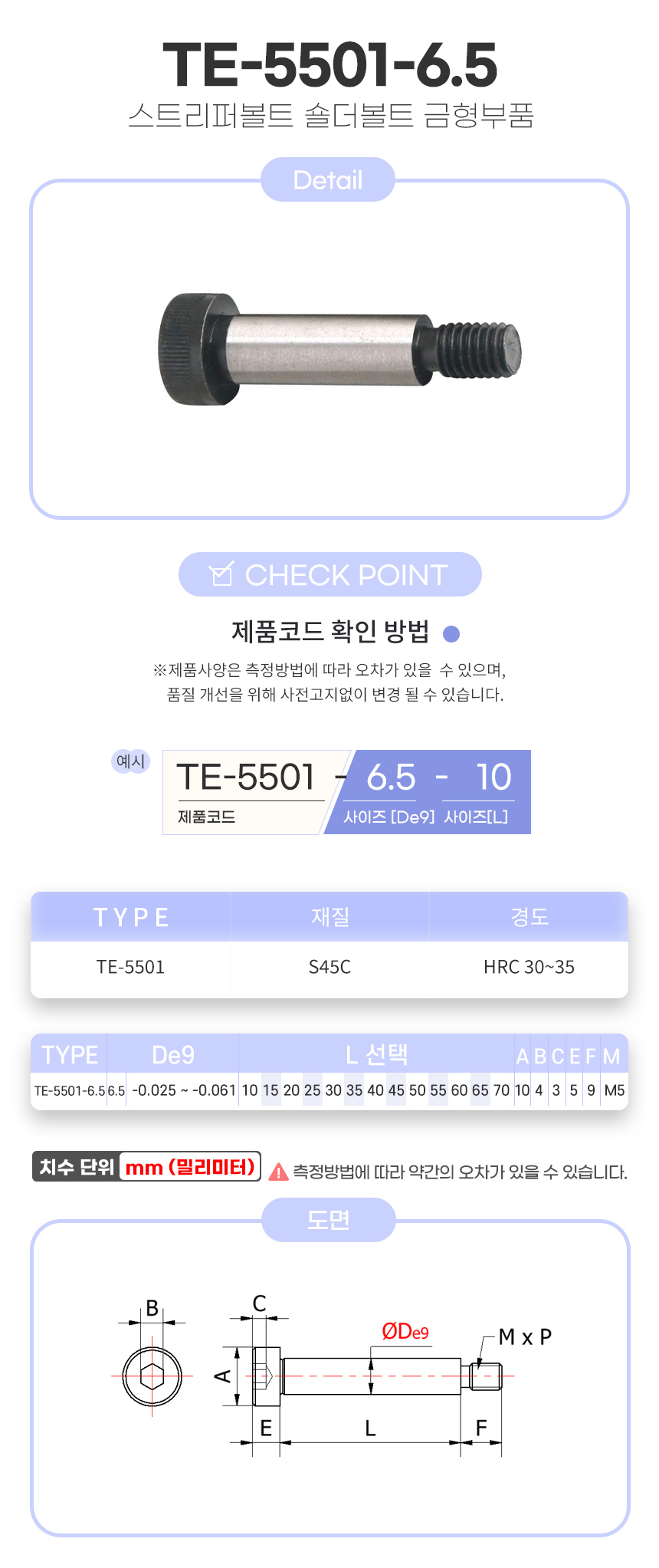 스트리퍼볼트 숄더볼트 금형부품 TE-5501-6.5